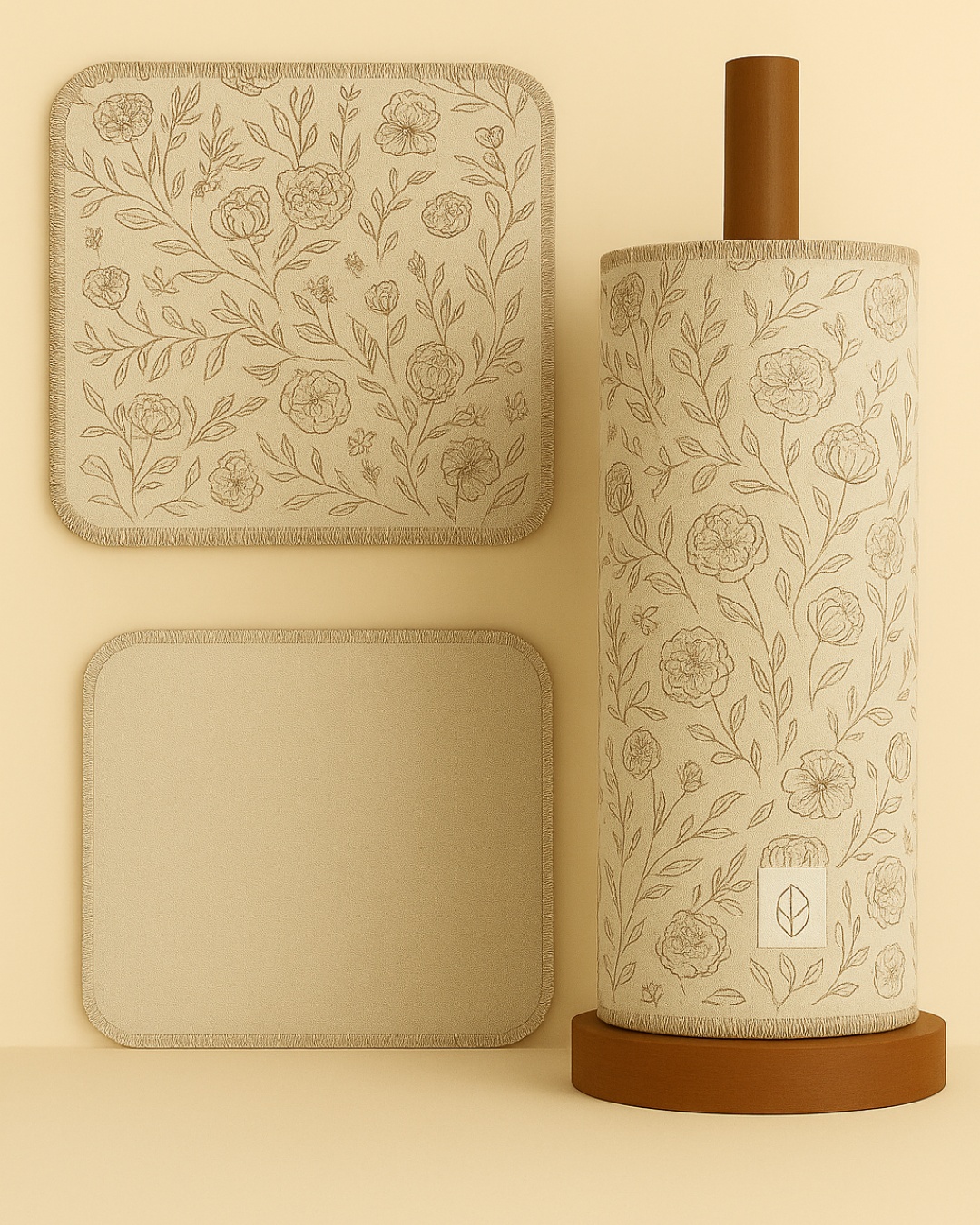 Deze herbruikbare keukenrol is ontstaan uit mijn wens om het dagelijks leven nét wat duurzamer én mooier te maken. Duurzaam, praktisch én leuk om te zien, deze katoenen keukenrol is mijn persoonlijke favoriet voor een bewuste keuken. En ja, schoonmaken voelt echt beter met een mooi design erbij.