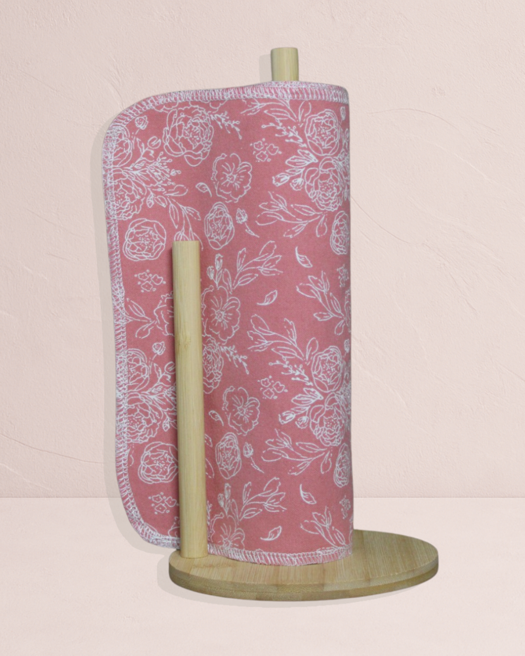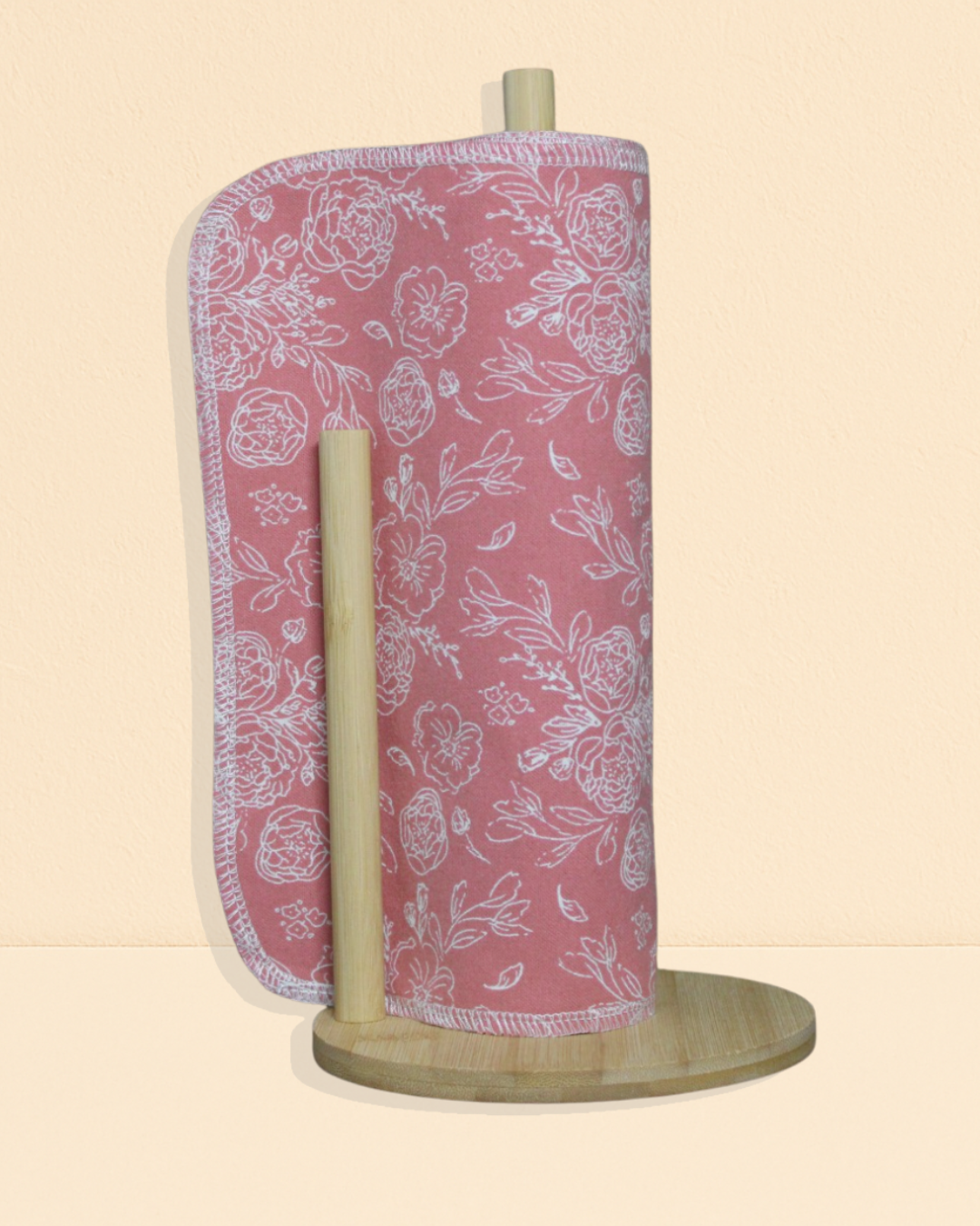 Onze herbruikbare keukenrollen worden geleverd zonder wegwerpbare binnenrol – wel zo duurzaam. Combineer jouw favoriete print met onze bamboe keukenrolstandaard voor een compleet en elegant geheel. Gemaakt van stevig, natuurlijk bamboe en ontworpen om perfect te passen bij onze rollen.